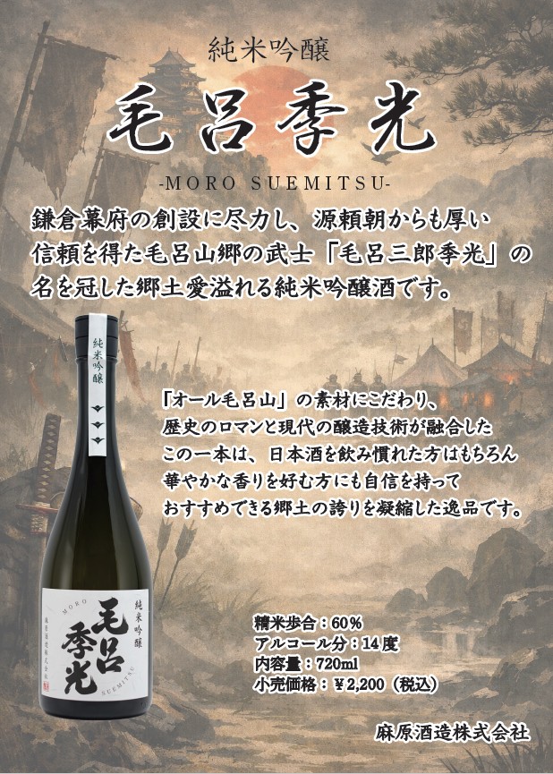 日本酒「純米吟醸 毛呂季光(もろすえみつ)」