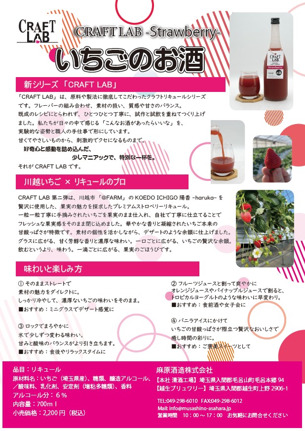 リキュール「CRAFT LAB vol.2 -Strawberry- いちごのお酒」など