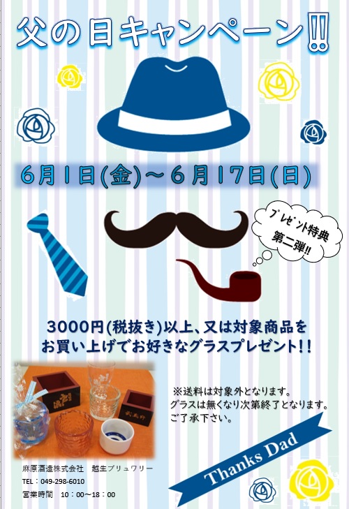 来月の父の日にむけて キャンペーン第二弾開催予定です。